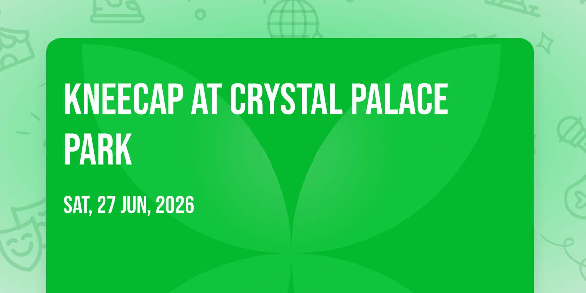 🎉 Prepare to be amazed at Kneecap at Crystal Palace Park, the most anticipated gathering of the season! 🌟 Set against the stunning backdrop of Crystal Palace Park in vibrant London, EN, this event promises to redefine your expectations. 📅 Mark your calendars for June 27th, 2026 at 12:00 PM and get ready to immerse yourself in an atmosphere of wonder and excitement. ✨ From the moment you arrive, you'll be transported into a world where memories are made and stories come alive. They have crafted an experience that perfectly harmonizes entertainment, innovation, and community spirit. 🌈 Join us as we create moments that will be discussed for years!