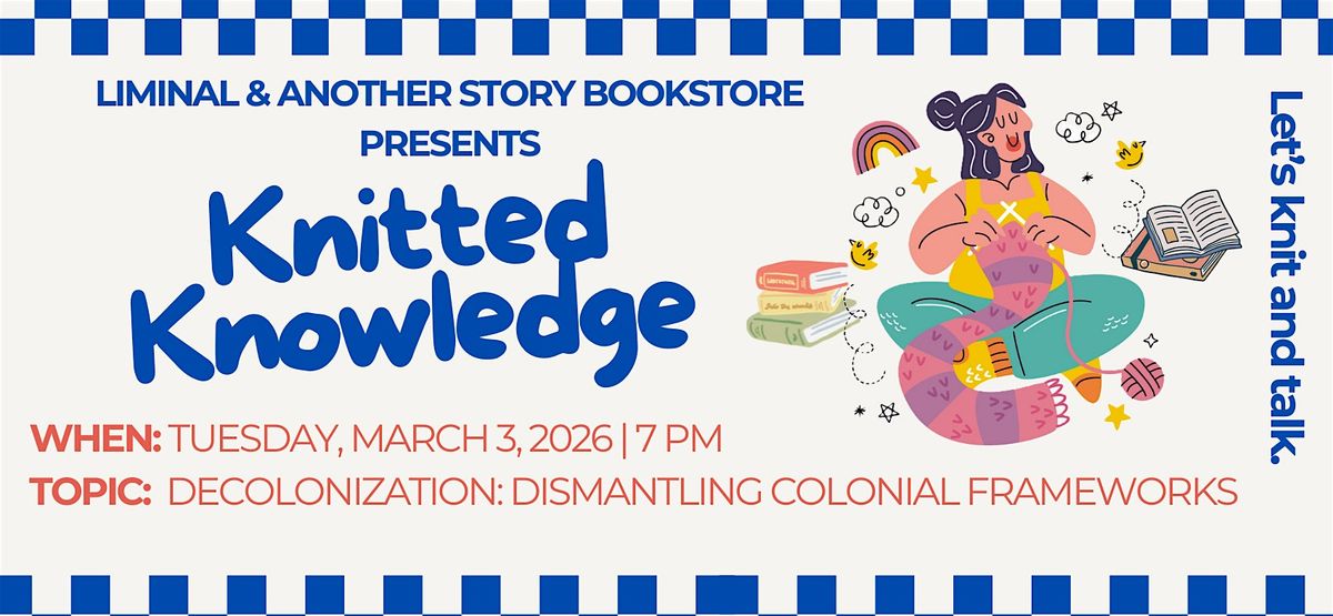 Join us for an evening where knitting becomes a companion to critical conversation. As yarn moves through our hands, we’ll explore how colonial structures shape the world around us and how communities, scholars, artists, and everyday people are imagining alternatives.