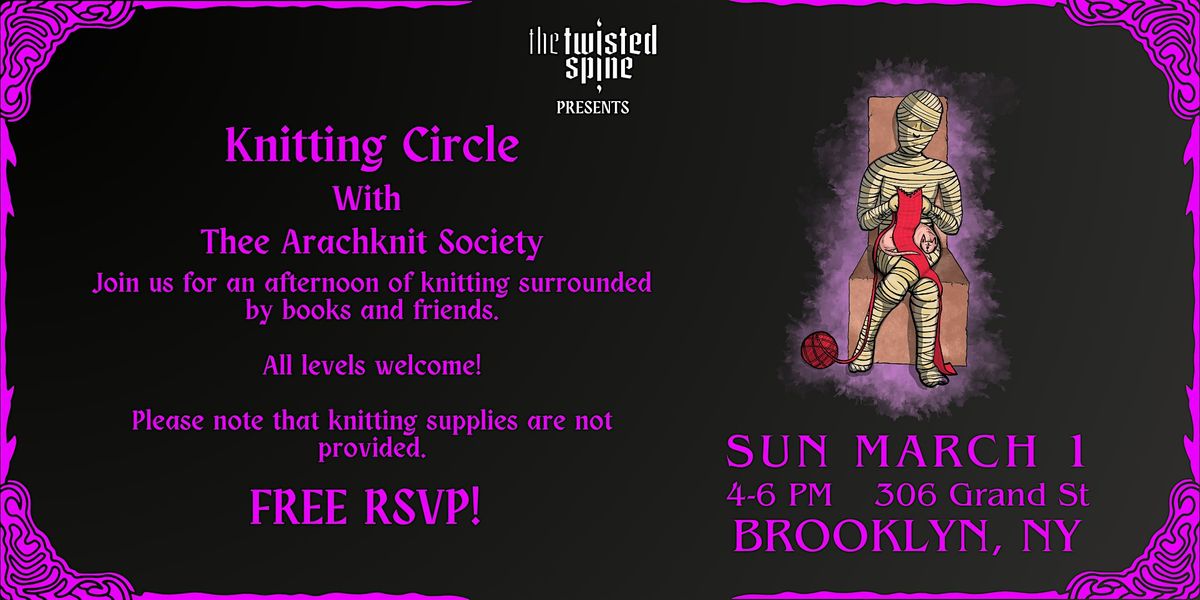 Calling all crafters! NYC's goth knitting circle Thee Arachknit Society will be dropping into The Twisted Spine to knit webs of intrigue.About this Event