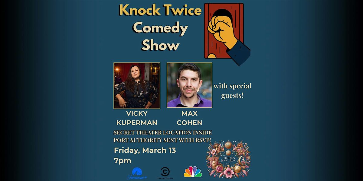 Knock Twice Comedy Show is a secret stand-up experience tucked away inside Port Authority’s Hidden Jewel Box Theater. Married couple Vicky Kuperman and Max Cohen host this speakeasy-style night of laughs delivers sharp jokes and surprise guests, featuring NYC's funniest comics. It’s the kind of show you only find if you know where to knock—literally.
