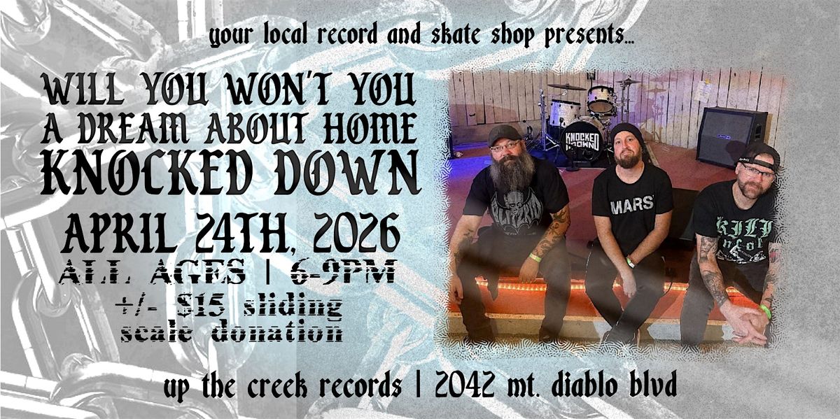 Knocked Down is a Pop Punk band based in Stockton/Sacramento, Ca. Having sounds influenced by the likes of Blink-182, Sum 41, MXPX and other late 90's/early 2000's Skatepunk bands at their best, Knocked Down's music is complete with catchy riffs, memorable hooks, and crisp melodies that grab the listener's attention from the very first note. Formed in 2016 by veterans of the local scene, Chris Whaley and Tony Heckerman, they released an EP and several singles in 2017 followed by their first full length, "Anything But Luck" in 2019. Forthcoming was the bands newest full length "One Way Ticket" released through Wiretap Records."