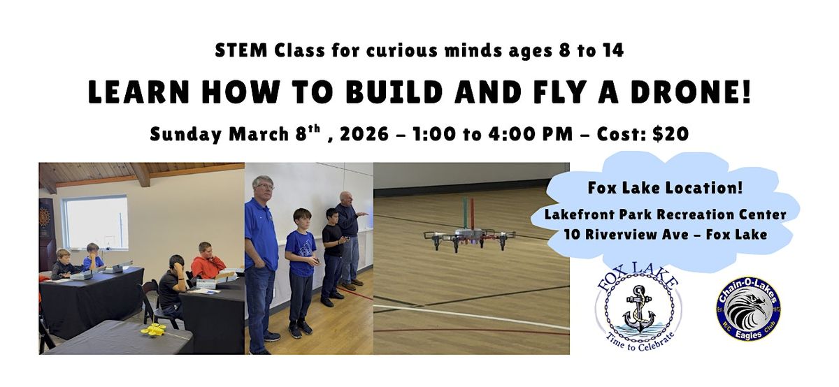 Get ready to build, fly and explore the amazing world of drones! This hands-on class is perfect for young inventors and future pilots who want to learn how drones work - and have a blast doing it! Parents or adult partners are encouraged to stay for the class.