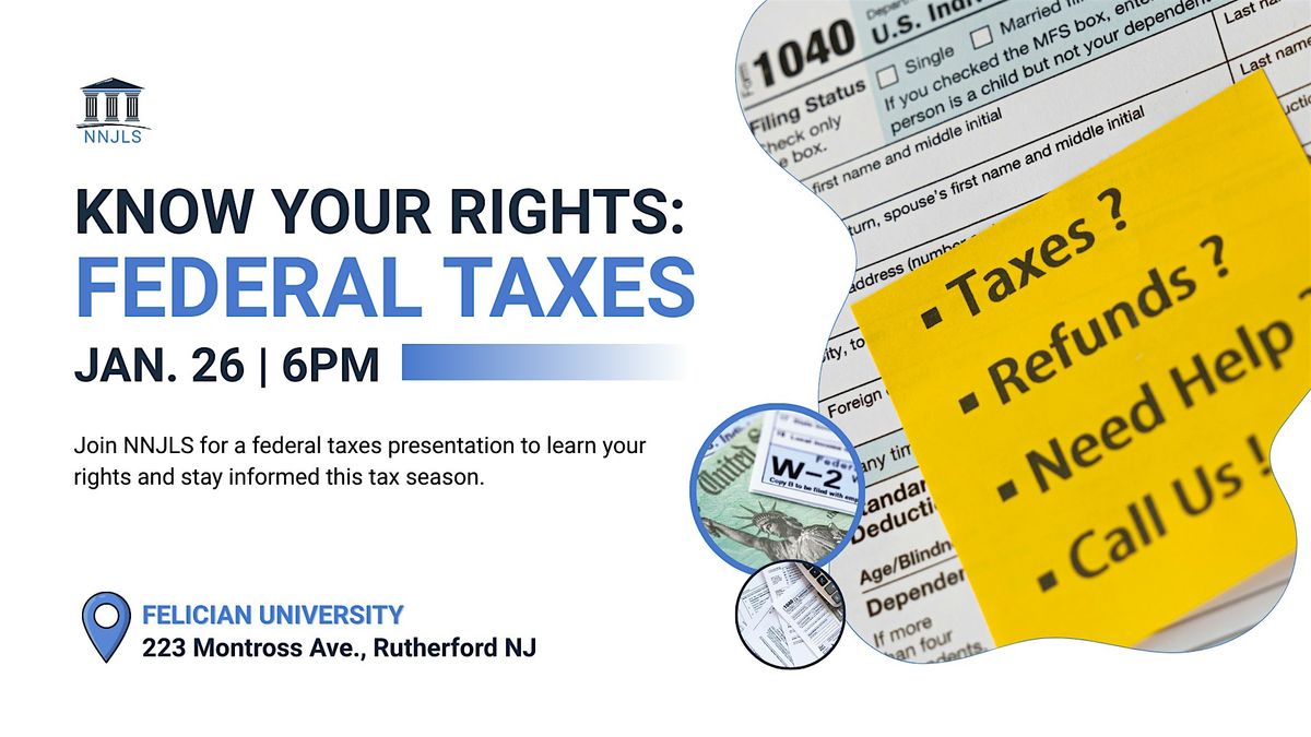 Join NNJLS for a Know Your Rights presentation on federal taxes.About this Event