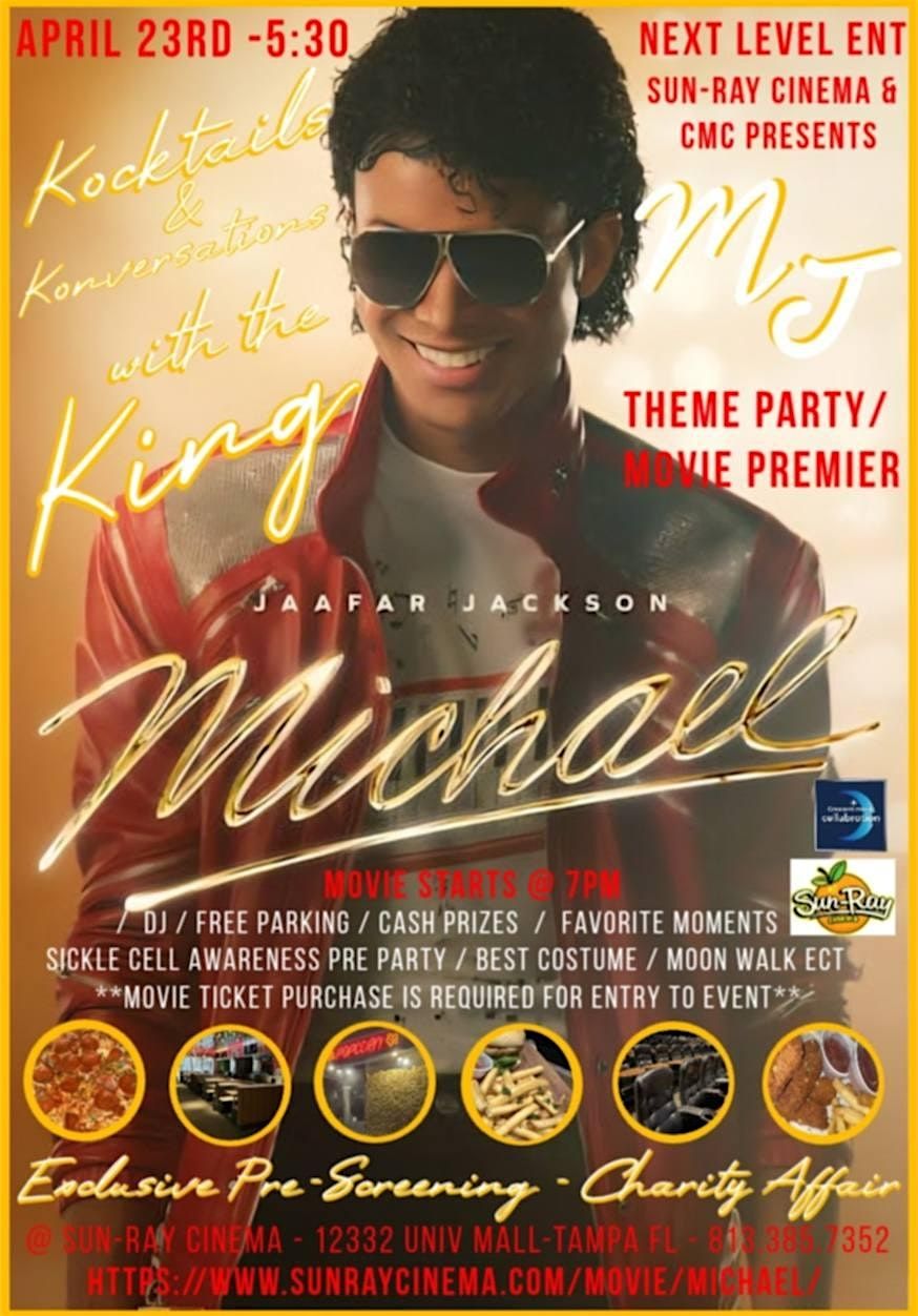 Before this blockbuster hits world wide..... we have an exclusive pre screening at the brand new Sun-Ray Cinema. It comes out on everywhere Friday but you can come check it out on Thursday before anybody else gets a chance to see it !!!! At 530 we will have the MJ pre party charity affair. Come on out in your favorite MJ t shirt or costume !!!! We are gonna have a dj, playing his classic songs and watching his classic videos !!! We will also have prizes for the best tshirt and MJ costume !!! Get ready to SCREAM, DANCE, HIGH KICK, SPIN AROUND, LEAN, & MOONWALK as we remember the greatest performer of our generation !! We will also be collecting dontations for CRESCENT MOON CELLUBRATION FOR SICKLE CELL AWARENESS.....After the pre party we will go into the theater and watch the highly anticipated EXCLUSIVE PRE SCREENING AT THE BRAND NEW THEATER LOCATED AT UNIVERSITY MALL !!! Show time is Thursday 7pm 12332 univ mall tampa fl.