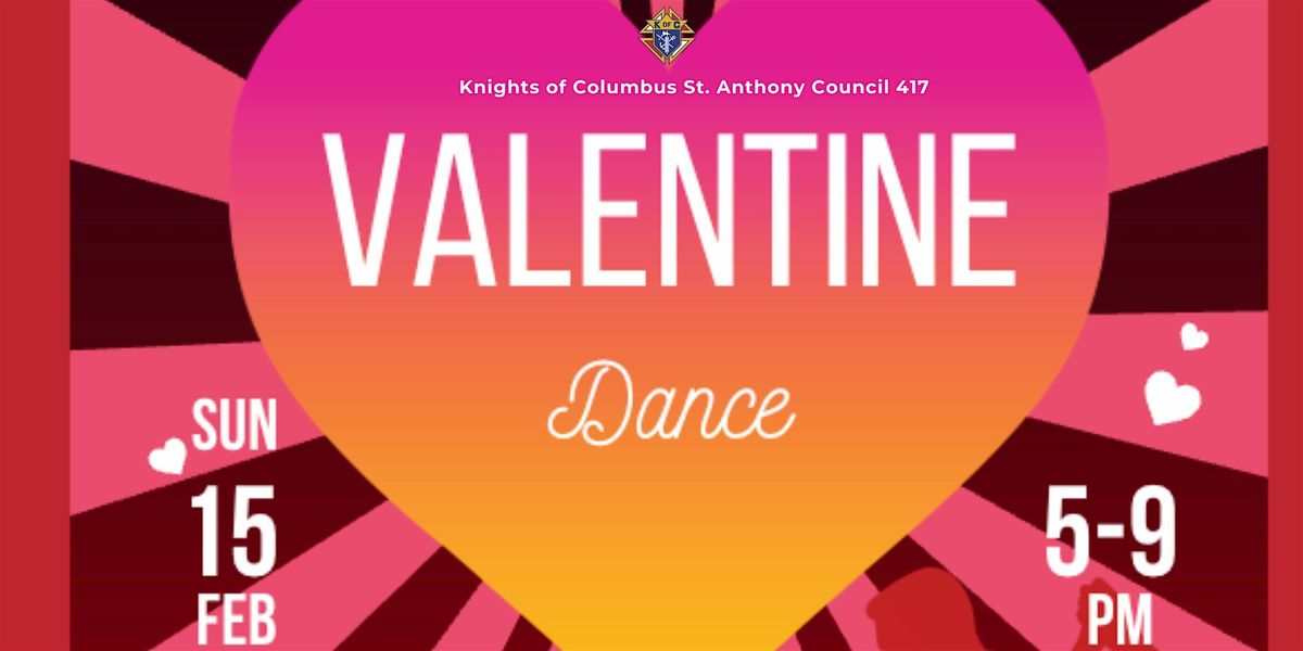 Celebrate love, fellowship, and community at the Knights of Columbus St. Anthony Council 417 Valentine Dance. With Music Provided by DJ Jammin Dave! Join us for an elegant evening of music, dancing, and connection in a romantic setting perfect for couples and friends alike.