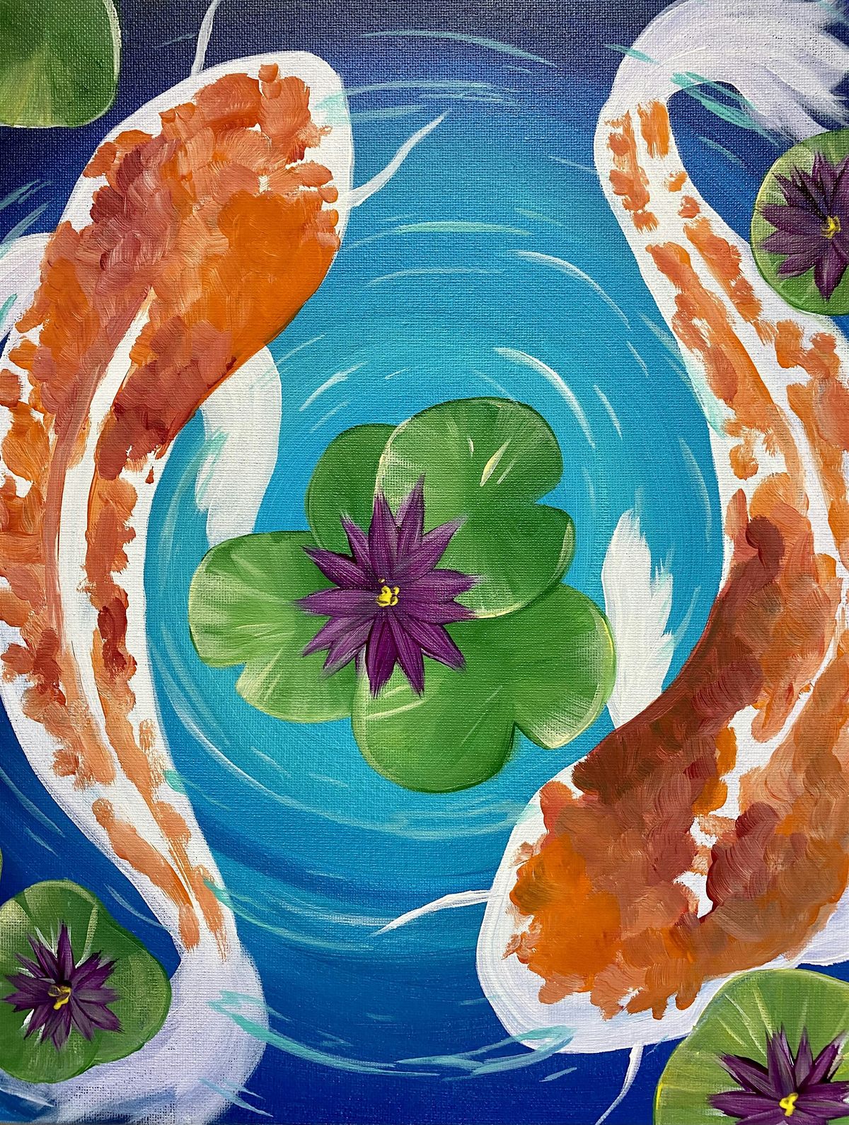 At this Koi Fish Pond Paint and sip Night, indulge in a fun LA night of creativity and fun! Hosted at the vibrant venue, Kalaveras and instructed by talented artist, Morgan Palla. The perfect cozy paint and sip night!