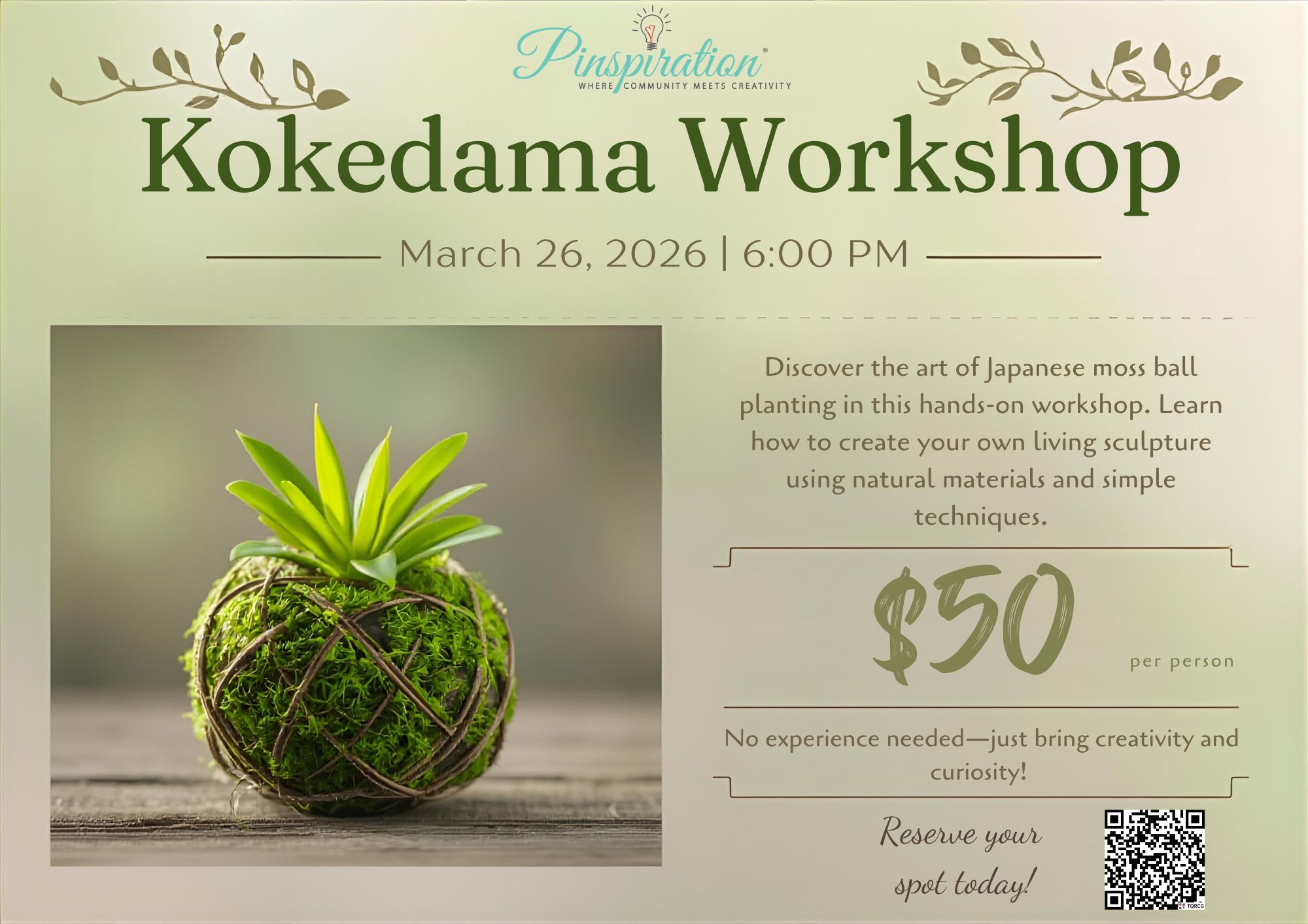 - Your completed Kokedama to take home
