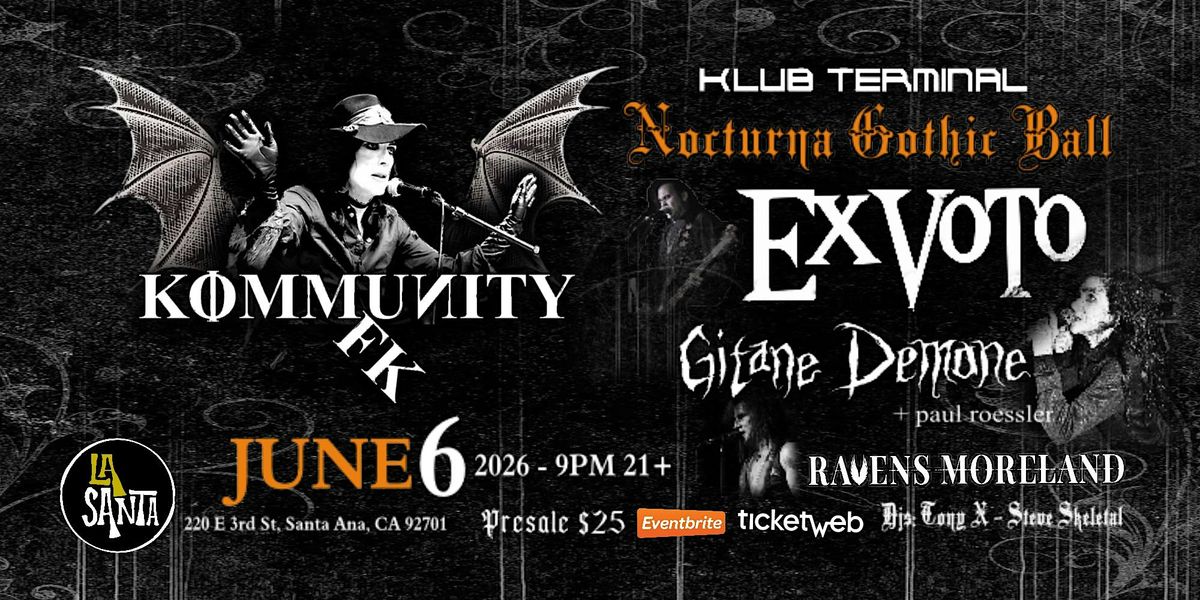 NOCTURNA GOTHIC BALL With KOMMUNITY FK - EX-VOTO - GITANE DEMONE - RAVENS MORELAND 06.06.2026About this Event