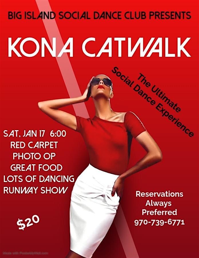 Big Island Social Dance Club proudly presents KONA CATWALK, an elegant and high-energy evening where fashion, dance, and social connection come together. Step onto the red carpet and immerse yourself in the ultimate social dance experience.