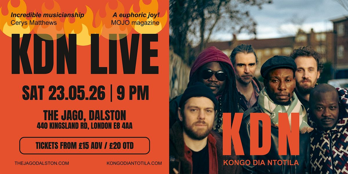 Led by the king of crowd participation, Congolese bassist Mulele Matondo, and co-founded with British jazz guitarist John Kelly, master of sublime sunshine sounds, KDN brings a perfect fusion of African roots and UK jazz. Will Scott and Mike Soper lift the roof with soul-rousing brass, while Mbouta Kissangwa on drums and rhythm guitarist Yves Tasinda lock in the driving grooves.