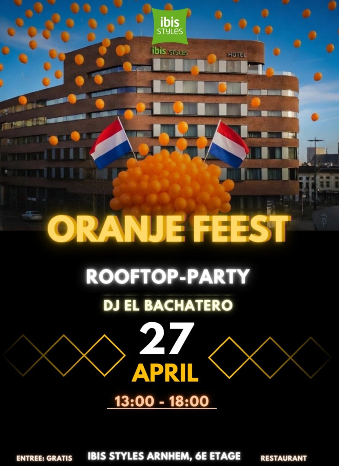 #KoningsdagArnhem #rooftopparty #LatinMix #ibisarnhem #gratisentree #Korenmark #MasYMas #salsa #bachata #kizomba #merengue #afrohouse #Reggaeton