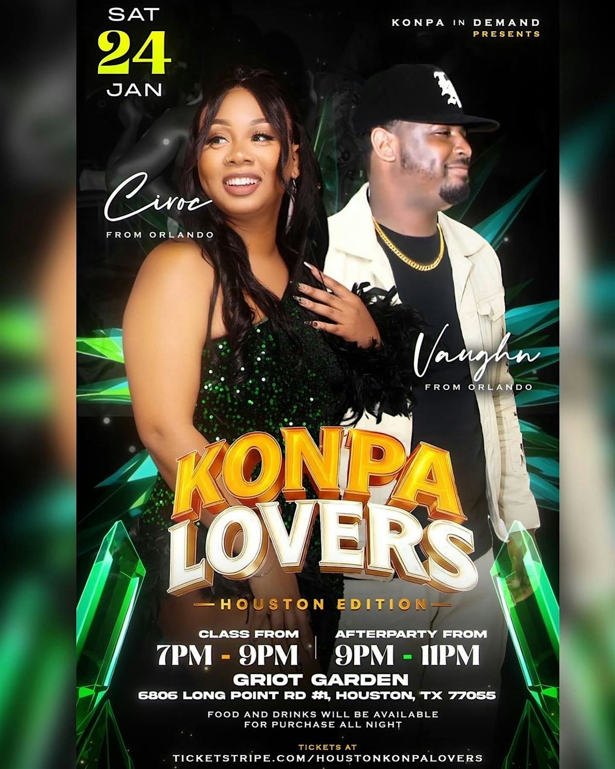 On Saturday, January 24th, Konpa instructor Ciroc and Vaughn from Orlando will be teaching a special Konpa dance class at Griot Garden in Houston from 7pm-9pm. Whether you're a beginner or looking to refine your moves, this class is the perfect opportunity to experience the rhythm and passion of Konpa.