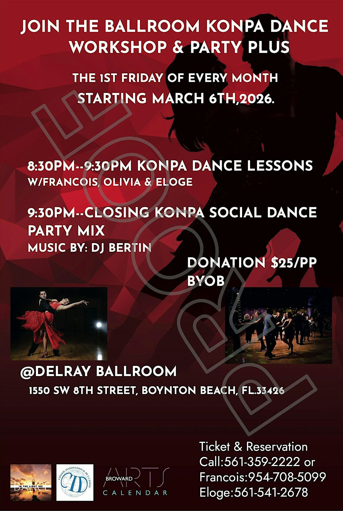 The 1st Friday of every month starting March 6, 2026 8:30-9:30pm Konpa Dance Lessons with Francois, Olivia, and Eloge.About this Event