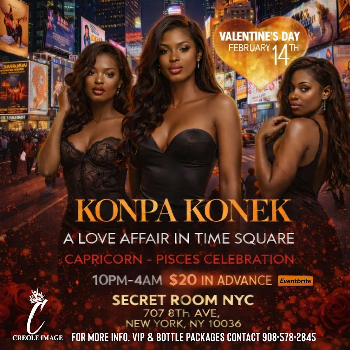 Welcome to KONPA KONEK “A LOVE AFFAIR IN TMES SQUARE”! Get ready for a night filled with love, music, and dancing under the stars. Join us at Secret Room on February 14, 2026 at 10:00 PM for a romantic experience like no other. Let's create unforgettable memories together in the city that never sleeps. Don't miss out on this special event!
