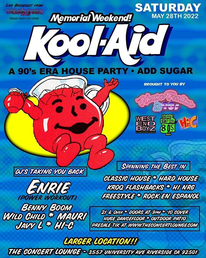 Kool-Aid - A 90s era House Party!Ernie (Power Workout), Benny Boom, Wild Child, Mauri, Javy L, Hi-C