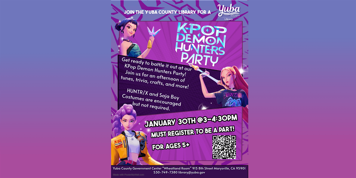 Get ready to battle it out at our KPop Demon Hunters Party! Join us for an afternoon of tunes, trivia, crafts, and more!