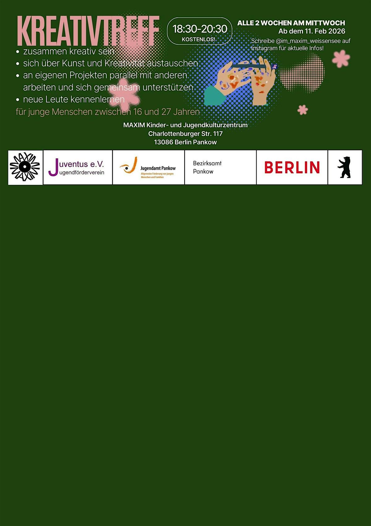 Dann ist der Kreativtreff im MAXIM Weißensee was für dich!