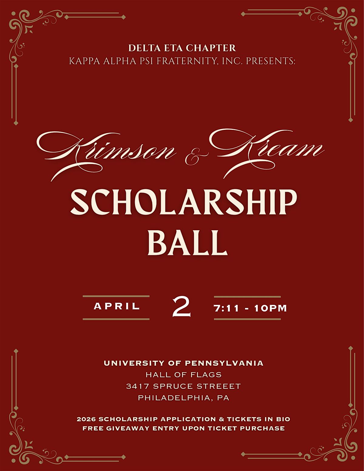 β¦οΈThe Delta Eta Chapter of Kappa Alpha Psi Fraternity, Inc. cordially invites you to the Krimson & Kream Scholarship Ball.