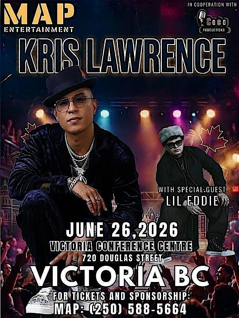 Get ready for an unforgettable night with Kris Lawrence and the amazing Lil Eddie live at the Victoria Conference Centre! Join us on June 26, 2026 at 6:30 PM (Pacific Time) for great vibes, awesome music, and a fun crowd. Don't miss out on this cool in-person event – it’s gonna be a blast!