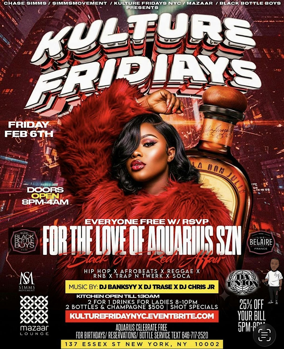 Fridays, we cordially invite you to join us at the Mazaar Lounge for the relaunch of our Kulture Fridays party.