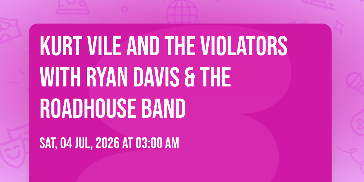 📍 Location: 47.6094, -122.334🌟 Step into a world of wonder at Kurt Vile and the Violators with Ryan Davis & the Roadhouse Band, where extraordinary moments await! 🏛️ Located at 5th Avenue Theatre in dynamic Seattle, WA, this event will become the talk of the town. 📅 Join us on July 4th, 2026 at 03:00 AM for a celebration that defies the ordinary. ✨ This curated experience brings together the best of entertainment, culture, and community spirit. Every detail has been thoughtfully planned to ensure an unforgettable experience for all our guests. 🎯 Take advantage of this opportunity to be part of something special. 🎊 Early registration is recommended as space is limited!