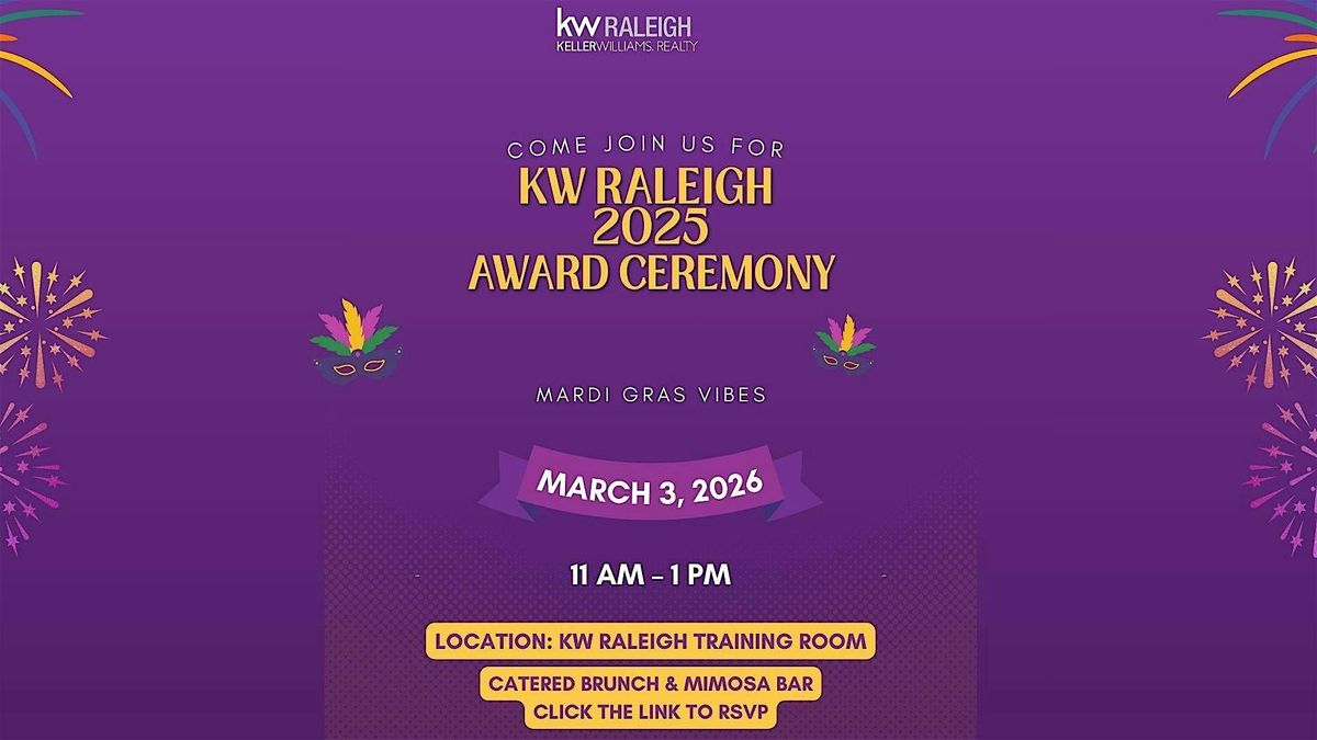 KW Raleigh 2025 Awards • March 3 | 11–1. Celebrate in festive flair with catered brunch & mimosa bar. RSVP via Eventbrite.