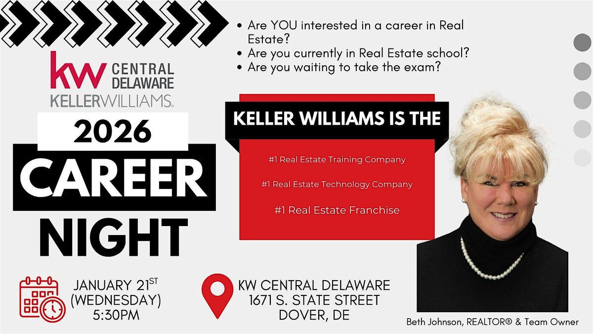 Come explore a career in Real Estate, why Keller Williams Realty Central Delaware is the #1 Real Estate Company in Central Delaware, our training, coaching, reimbursement program, and MORE!