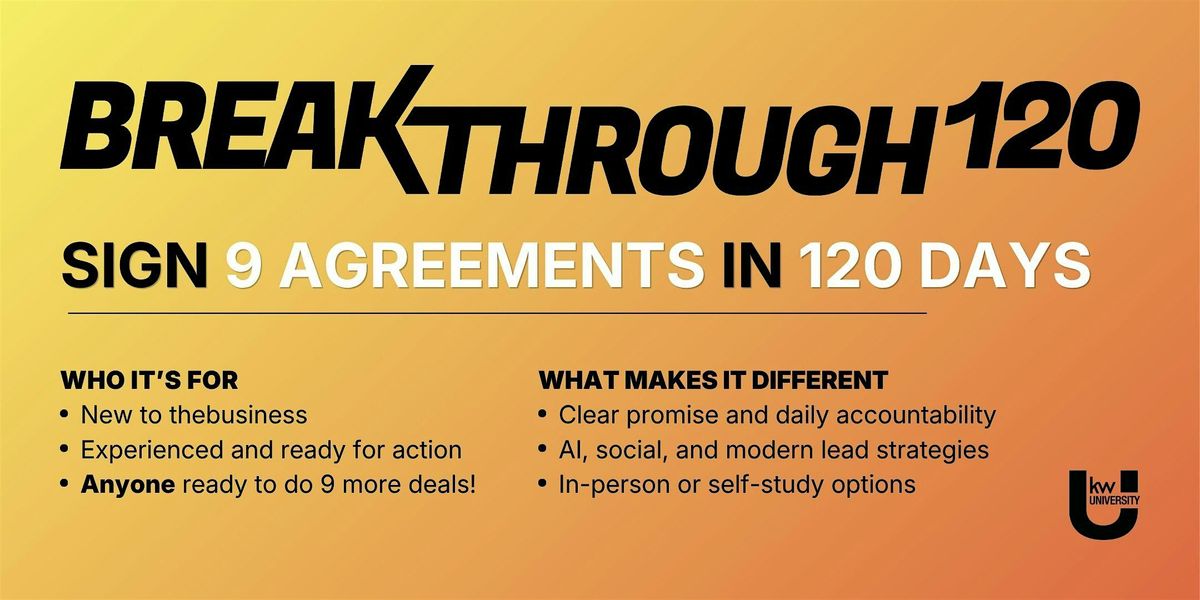 Breakthrough 120 helps you build habits, generate leads, and sign 9 agreements in 120 days.About this Event