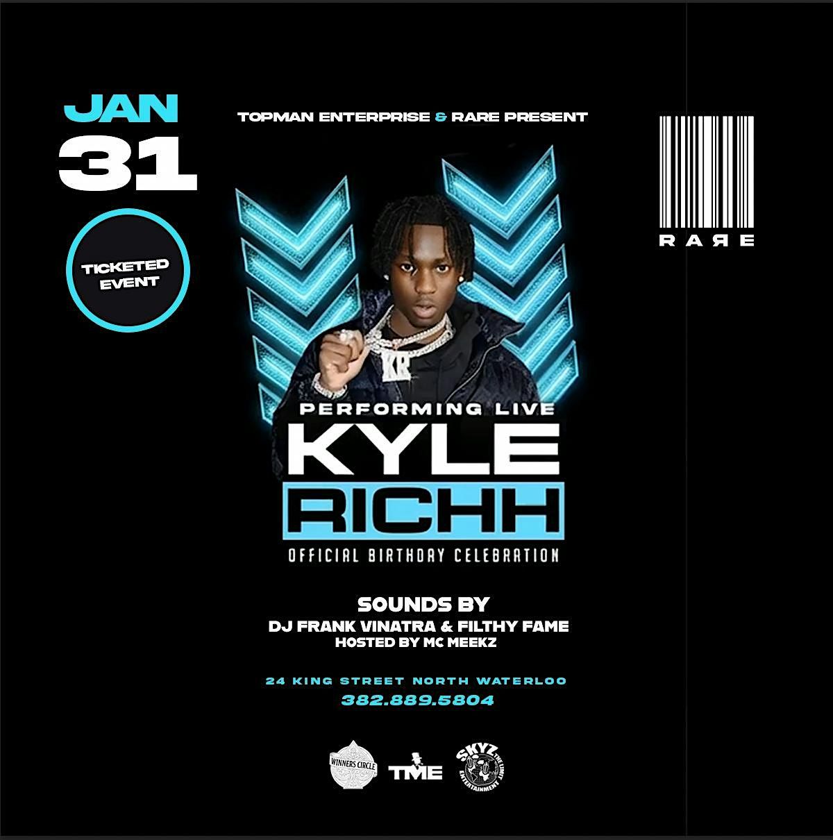 KYLE RICHH HOSTAND PERFORMING IN RARE NIGHTCLUB JAN 31ST! SATURDAY IN WATERLOO! 24 KING STREET NORTH WATERLOO. LIMITED DOOR