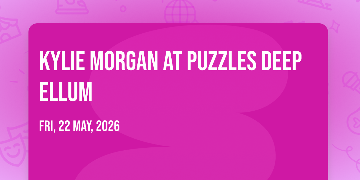 🎉 Welcome to Kylie Morgan at Puzzles Deep Ellum, where the impossible becomes possible and dreams take flight! 🏛️ Join us at Puzzles Deep Ellum in the heart of Dallas, TX for an event that will redefine your expectations. 📅 On May 22nd, 2026 at 07:00 PM, witness the transformation of space and time into something truly magical. ✨ It's a curated experience combining the best of innovation, entertainment, and community spirit, creating moments that will be remembered for years to come. Whether you're a first-time visitor or a seasoned enthusiast, prepare to be amazed. 🎊 Book now to ensure your place in this unforgettable experience!