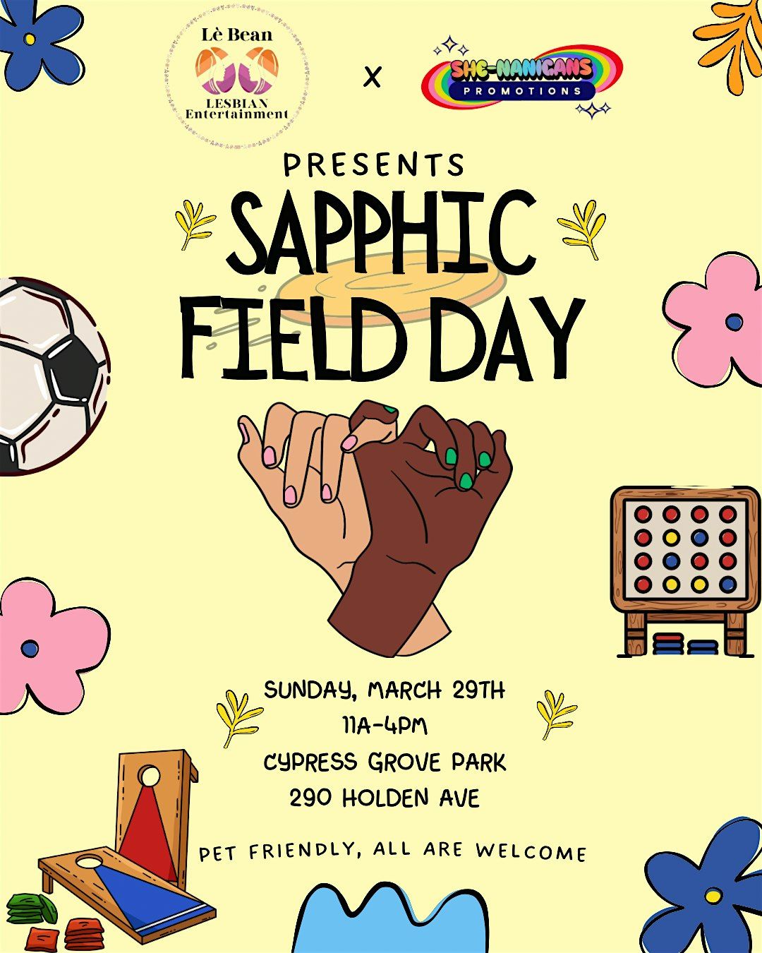 A fun, relaxed field day for sapphics & LGBTQ+ community members to connect, play games, and enjoy a Sunday afternoon at Cypress Grove ParkAbout this Event