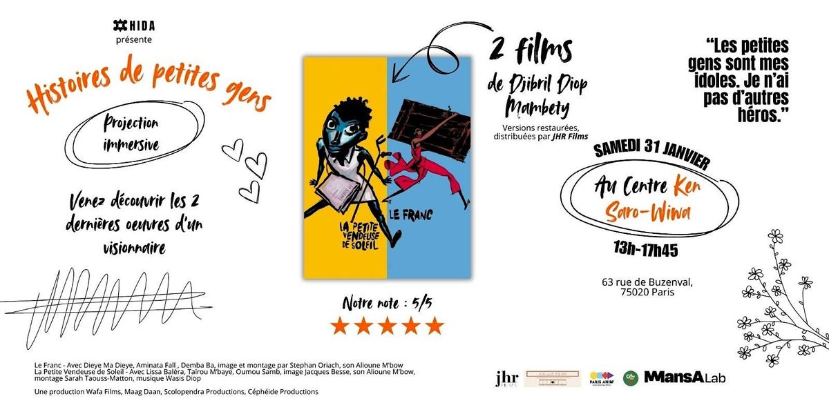 Plongez dans l’univers poétique et indiscipliné du cinéaste sénégalais Djibril Diop Mambéty à travers une projection immersive de deux courts métrages issus du diptyque Histoires de petites gens. Ces œuvres mettent en lumière la vie et les récits de personnages ordinaires, révélant le regard sensible, critique et visionnaire que Mambéty porte sur le monde.