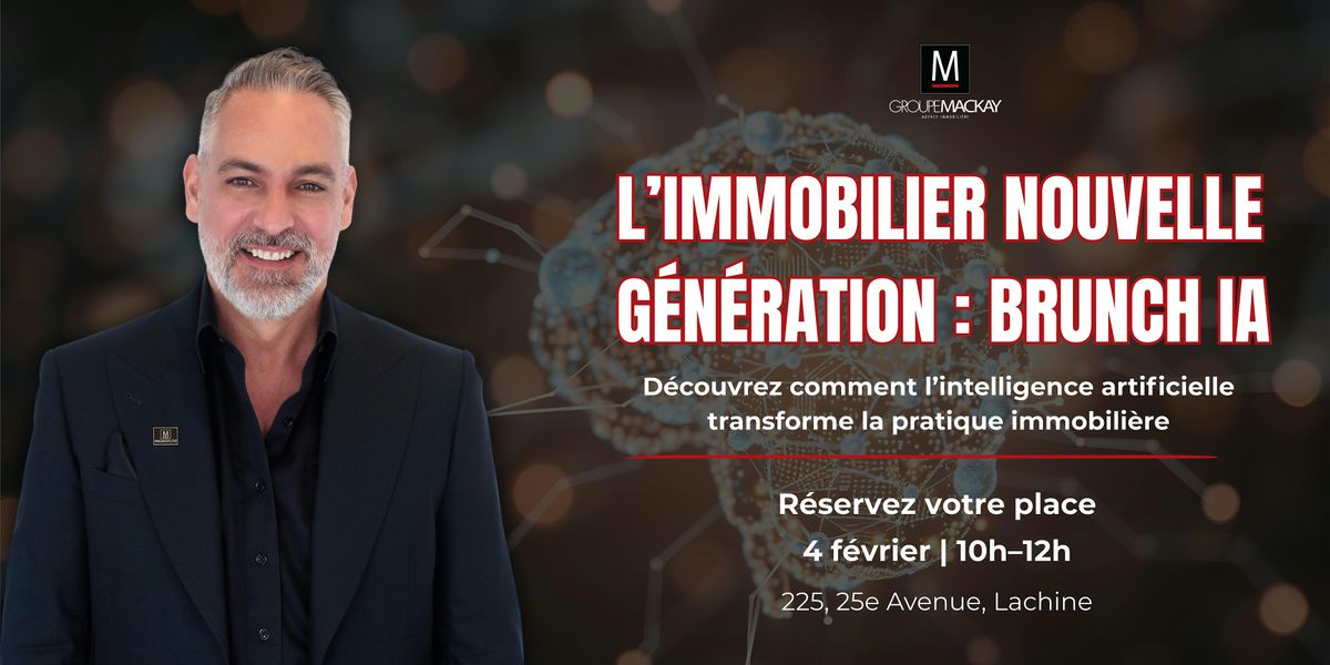 Lors de L’immobilier nouvelle génération : Brunch IA, François Mackay, président du Groupe Mackay et courtier immobilier de premier plan au Québec, partagera des stratégies concrètes et applicables pour intégrer l’intelligence artificielle à votre quotidien : optimisation des processus, gain de temps, augmentation de la productivité et amélioration des résultats.