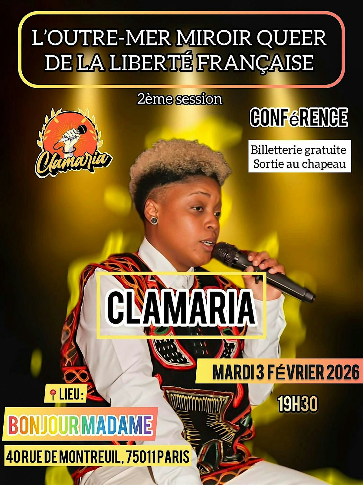 Après une première session qui a rencontré un très bel accueil, Clamaria remet ça et vous invite à une nouvelle rencontre autour de L’Outre-mer, miroir queer de la liberté française.