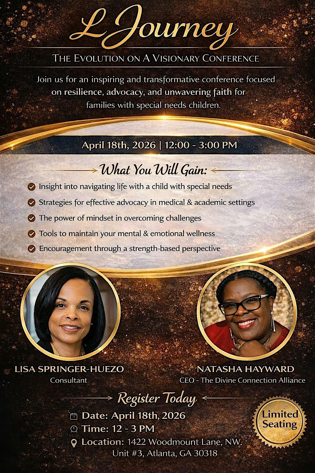Join us for an inspiring and transformative experience as we journey through the lived reality of resilience, advocacy, and unwavering faith. This powerful conference highlights the story of a mother who gave birth to a 22-week premature child and has successfully navigated the complexities of raising a child with special needs.Through her transparent and heartfelt testimony, she will share how she has overcome challenges in both the medical and educational systems—while maintaining her mental wellness and strength. Attendees will gain insight into how a focused, resilient mindset can shape outcomes and create opportunities for their loved ones.Grounded in a strength-based and spiritual approach, this session will empower you with the tools, confidence, and clarity needed to advocate effectively and compassionately.
