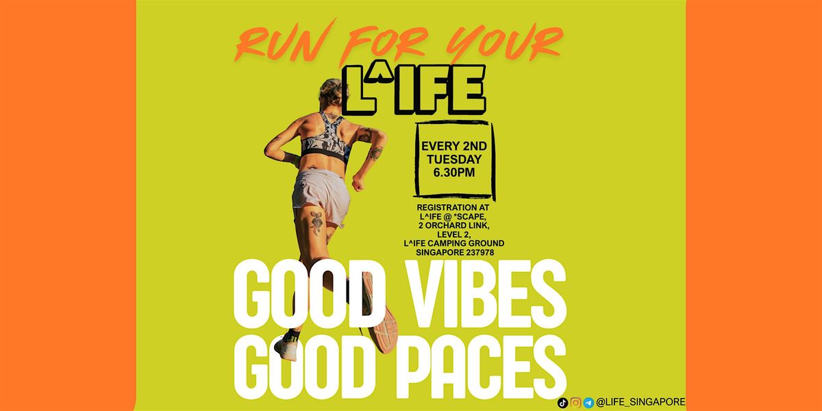Lace up and pull through for L^IFE Run Club β a free community run built for energy, movement, and connection. No pressure, no ego, just a solid run with good people and even better vibes.