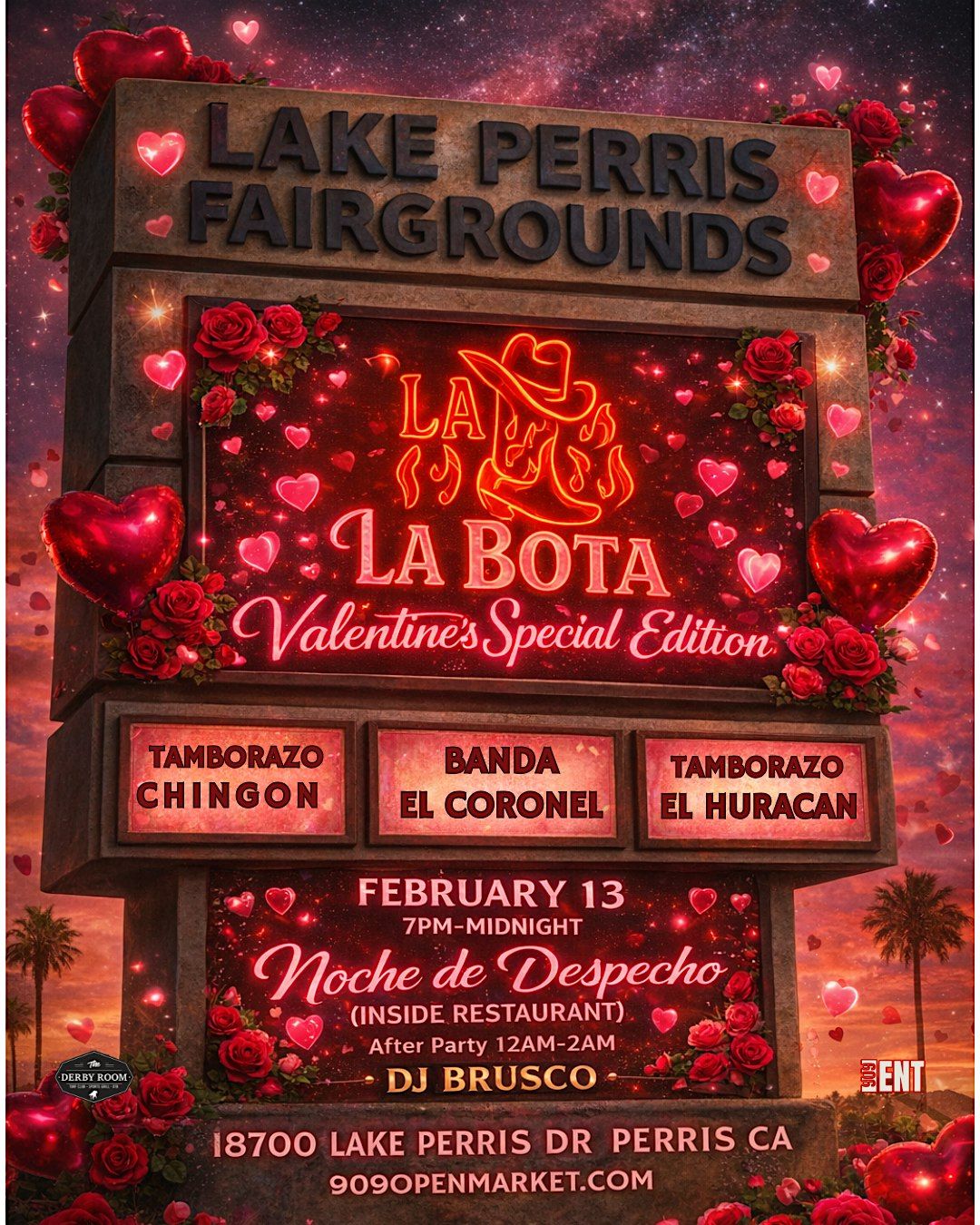 La Bota Fridays is a monthly nightlife experience bringing high-energy banda, tamborazo, and puro ambiente to Perris — happening every 2nd Friday at The Derby Room.