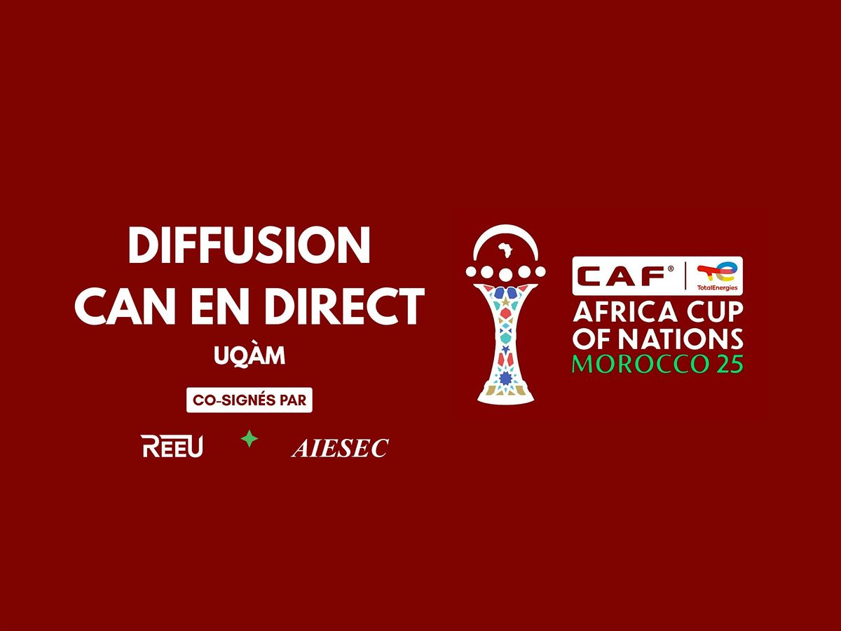 Le organise des diffusions collectives de la Coupe d’Afrique des Nations (CAN) sur le campus de l’UQÀM en collaboration de l', afin de partager ensemble les moments forts des phases finales de la compétition.