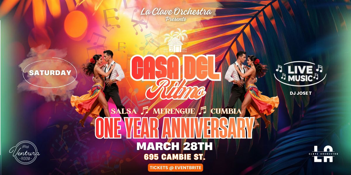 Estamos ansiosos por compartir este momento especial, una celebración de gratitud y logro por el PRIMER ANIVERSARIO de LA CLAVE ORCHESTRA en “CASA DEL RITMO” en el Ventura Room. ¡Estamos extremadamente agradecidos de trabajar con el equipo de Ventura Room y la oportunidad de colaborar juntos en un lugar tan elegante para traerles a ustedes la noche latina en vivo más caliente en Vancouver! ¡Agenden la fecha para el 28 de Marzo, porque les brindaremos una GRAN show! 🔥 ¡Prepárense para más de nuestra energía llena de vida con los RITMOS de salsa, merengue y cumbia! 🎶 ✨ ¡garantizándoles como siempre que bailarán toda la noche con música EN VIVO, acompañados por DJ JOSÉ T, quien les tocara todos los himnos de la fiesta entre sets, incluyendo música latina, urbana, reggaetón, éxitos de club y mucho más!