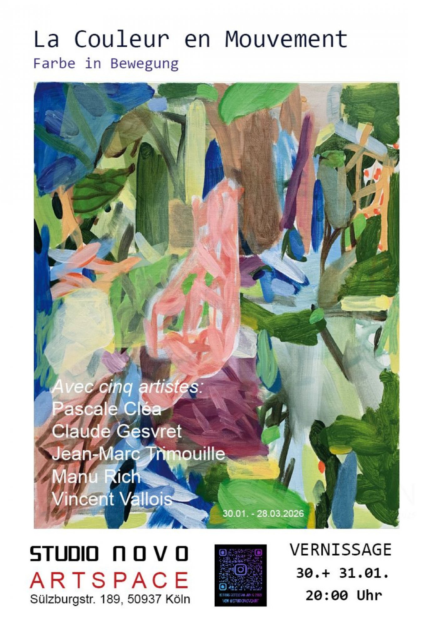 The five French artists – Pascale Cléa, Claude Gesvret, Manu Rich, Jean-Marc Trimouille, and Vincent Vallois – present a painting practice rooted in gesture, where color generates its own inner light. Their works draw on impulses from Art Informel, Tachisme, Lyrical Abstraction, and Art Brut, yet transform these legacies into contemporary, independent visual languages.