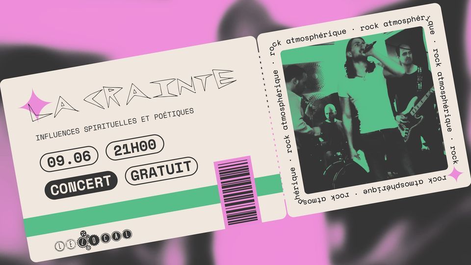 Premier passage au Local pour La Crainte ! Plonge dans leur univers artistique unique, où les paroles intenses se mêlent à des mélodies envoûtantes, le tout en entrée libre !