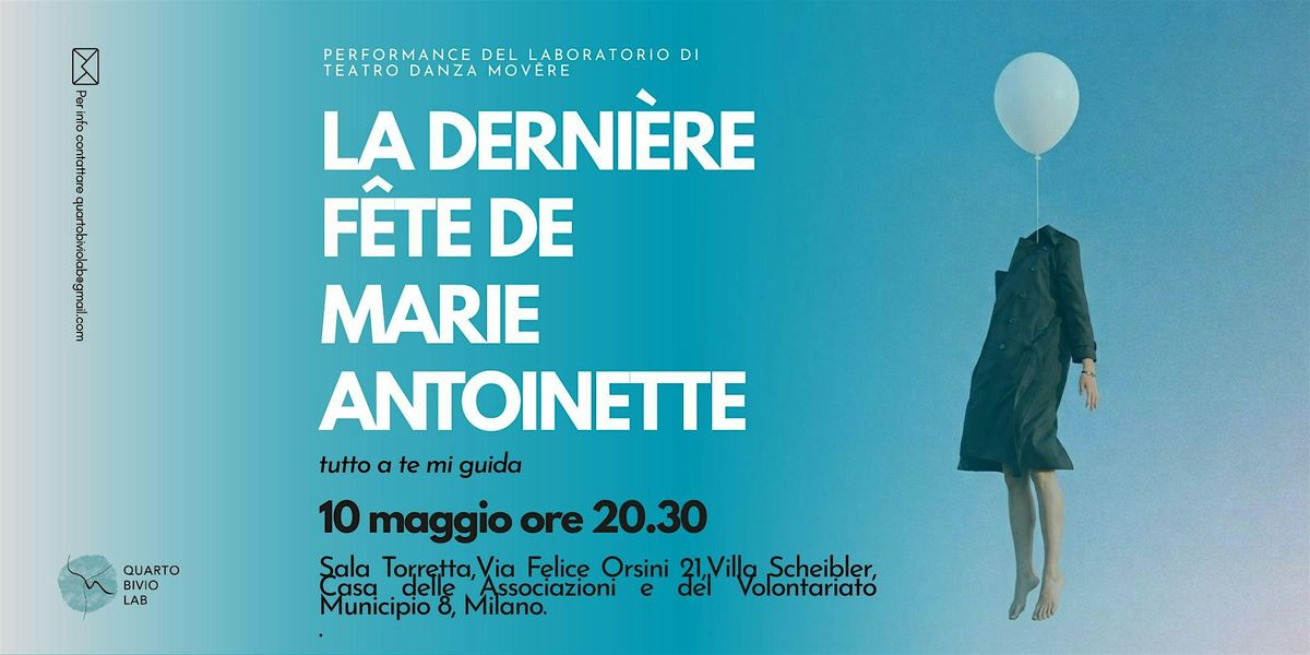 A partire dalle figure di Maria Antonietta e Luigi XVI, in bilico sull’orlo di un abisso che nemmeno immaginano, la performance indaga e attraversa il confine sottile tra festa e rovina. Tra la leggerezza che ci salva e la superficialità che ci condanna. Tra realtà e narrazione che, come idra a cento teste, si ramifica in storie che diventano più vere della verità. Corpi, immagini e memorie si muovono sul piano inclinato della Storia, dove il fluire degli eventi sembra inarrestabile, e forse lo è davvero. Non è un’indagine sulle colpe, ma una domanda aperta: quanto siamo capaci di riconoscere i segni della fine? E quanto scegliamo davvero di affrontarli? Affiora forse la possibilità che la caduta non sia solo destino, ma anche una forma di inquieta liberazione, come un palloncino in fuga verso gli strati azzurri dell’atmosfera.