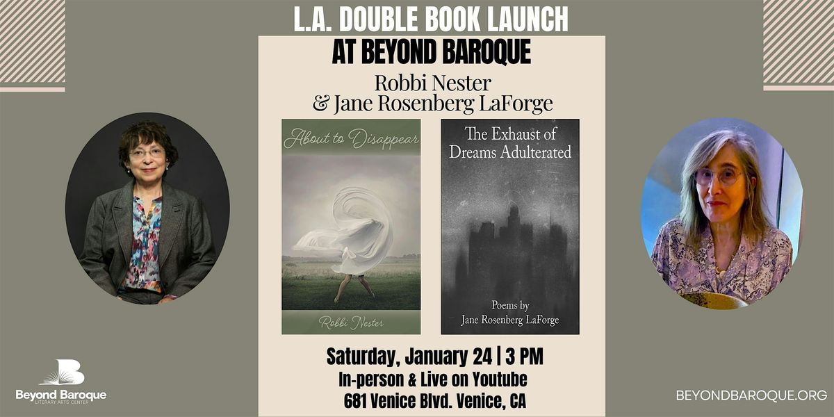 Join us for an afternoon of poetry celebrating the launch of two poetry collections: About to Disappear by Robbi Nester and The Exhaust of Dreams Adulterated by Jane Rosenberg LaForge. The poets will read from their new collections in The Wanda Coleman Theater followed by a reception and book signing.