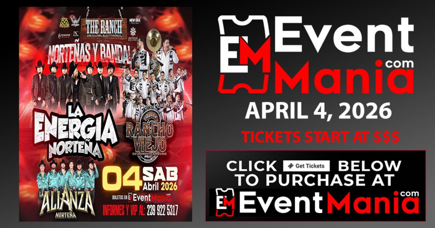 Compra tu boleto aqui: https://eventmania.com/events/la-energia-nortena-banda-rancho-viejo-y-mas-fort-myers-fl-2026-04-04/oWN4/seat