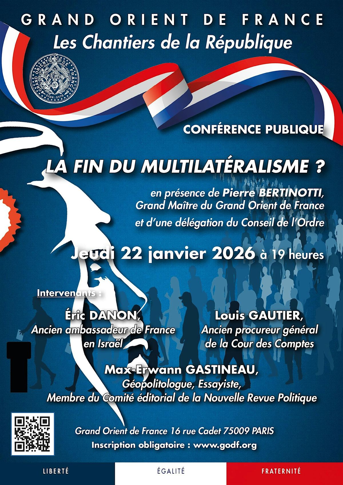 Conférence publique organisée dans le cadre des Chantiers de la République, en présence de Pierre BERTINOTTI, Grand Maître du Grand Orient de France et d’une délégation du Conseil de l’Ordre.