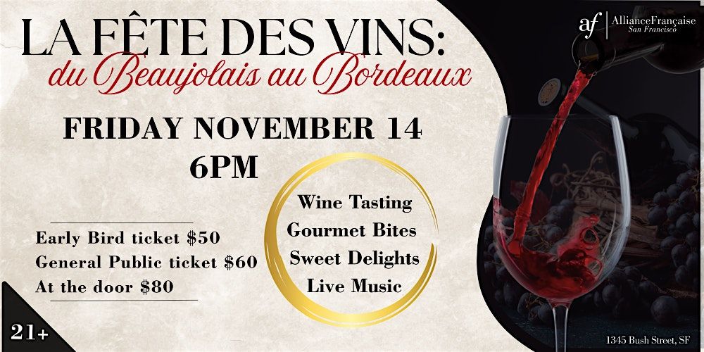 Join us for a festive and unforgettable evening of fine French wines, live music, and gourmet delights, all in the heart of San Francisco.