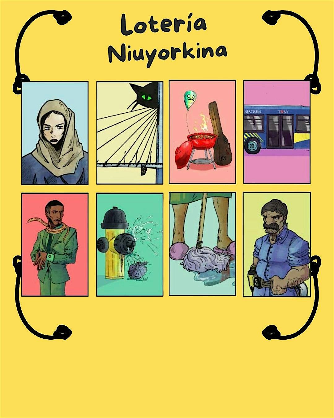 Join us for the "La lotería Niuyorkina: An exploration of the city's Linguistic Landscape," an event launching an educational board game (bingo-like) created by a LAILaC student, Diana Higuera, alongside the illustrations of a Queens College junior student, Mateo Oldenburg. This pedagogical game/toolkit is available and accessible to all as an Open Educational Resource and was originally funded by the CUNY Adjunct Incubator Award in 2025, and developed for Spanish and Latinx studies adjunct instructors who juggle teaching multiple classes in the CUNY system. The game is made up of 24 cards depicting characters, places, and objects representing the Latinx communities in New York City.