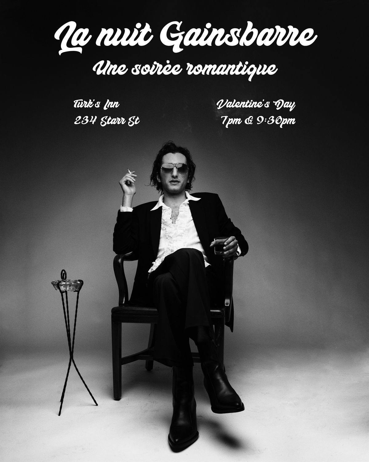 Bienvenue à la nuit Gainsbarre! Valentine's Day, come enjoy a.romantic evening of French jazz, namely Serge Gainsbourg and Boris Vian.