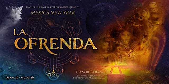 Plaza de la Raza and Indigital Productions present LA Ofrenda, an original Aztec dance mixed-media performance, written and directed by Jeniffer Sanchez. The performances will take place at the Margo Albert Theatre at Plaza de la Raza (3540 N. Mission Rd. LA, CA. 90031) - as part of our 4th Annual Mexica New Year Celebration - on Friday, March 6 at 7:00 PM, Saturday, March 7 at 7:00 PM and Sunday, March 8, 2026 at 2:00 PM.