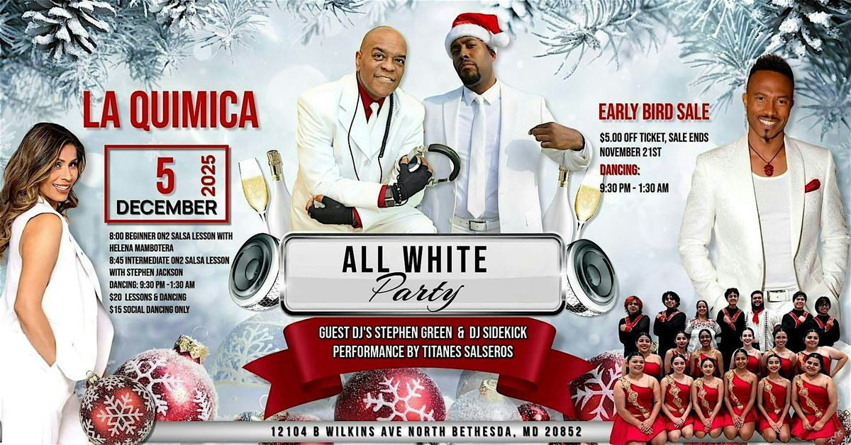 Migente, this is it, the last party of the year! It's time to break out your finest all-white attire and celebrate the holiday season with us. Whether you're coming to learn some new moves, dance the night away, or just soak up the incredible vibes, this is the event you don't want to miss. Let's make this holiday celebration one for the books.